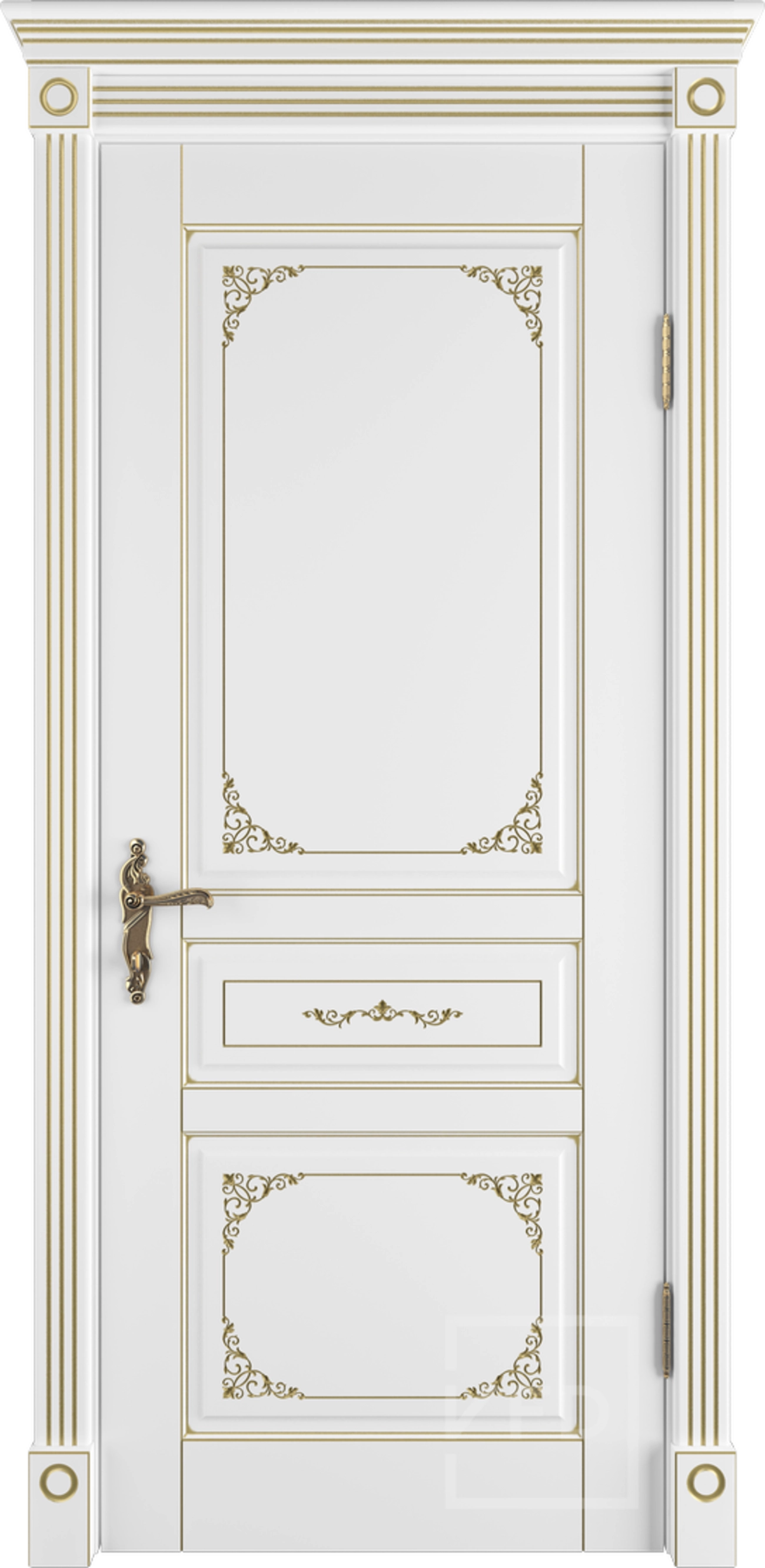 Дверное полотно Афина ДГ 3D 800*2000 Белая эмаль/Polar пат. золото PG