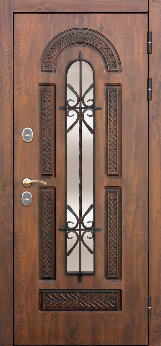 • Внешнее покрытиефрезерованная МДФ-панель 12 мм, плёнка, цвет – «грецкий орех» с патиной, покрыта уличным акриловым лаком.