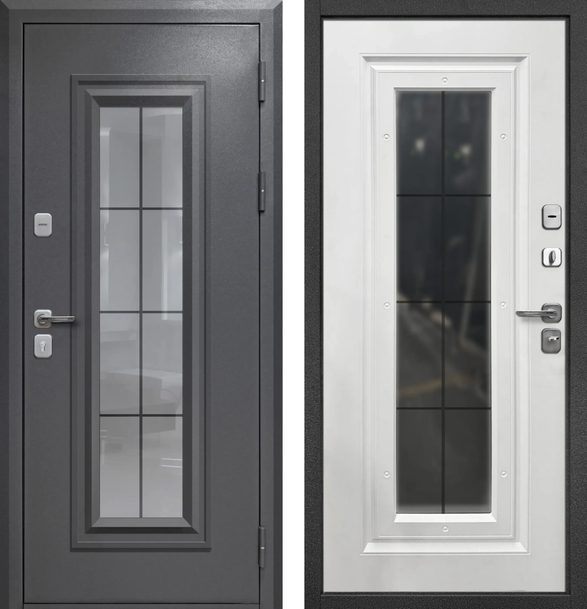 Дверь мет. 9 см 2D Стеклопакет Букле Графит 860 левая