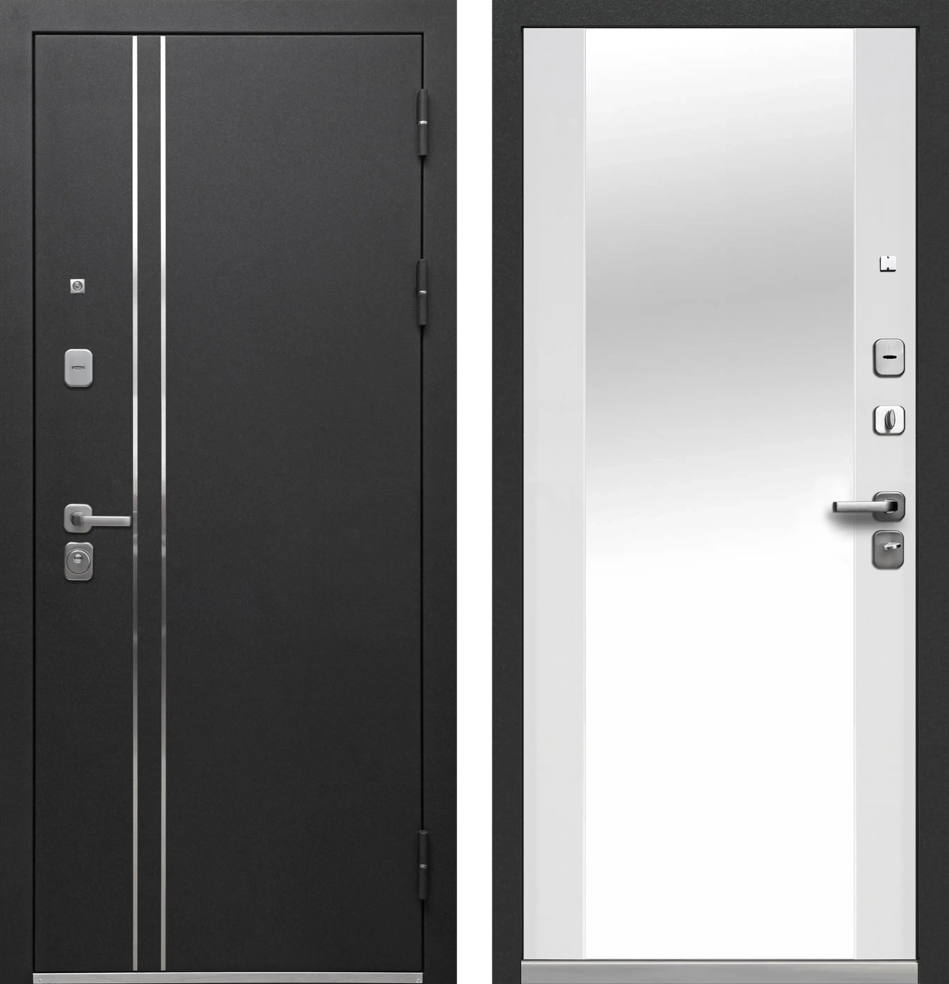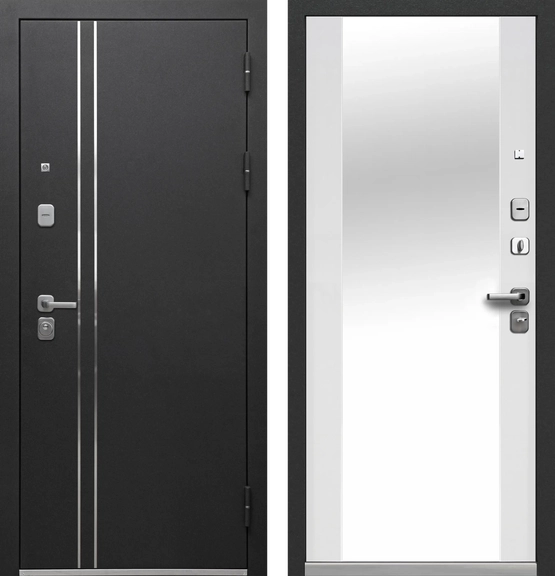 Дверь мет.Luxor Букле черный Зеркало (860мм) правая