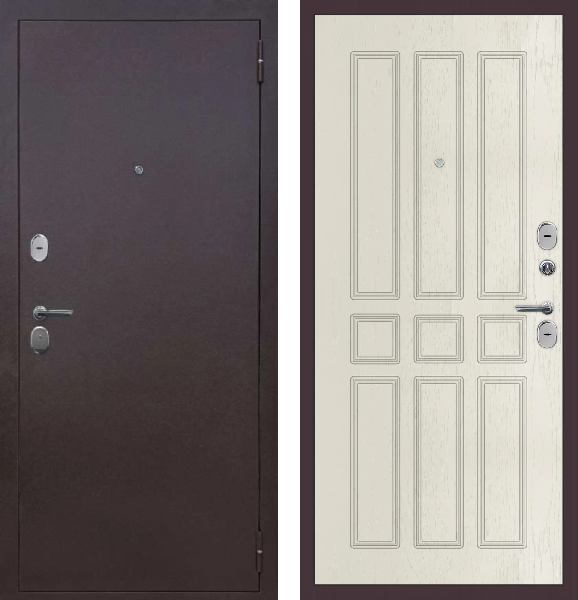 Дверь металлическая МеталЮр М 32 (Медный Антик Белое дерево 860*2050 Правая)
