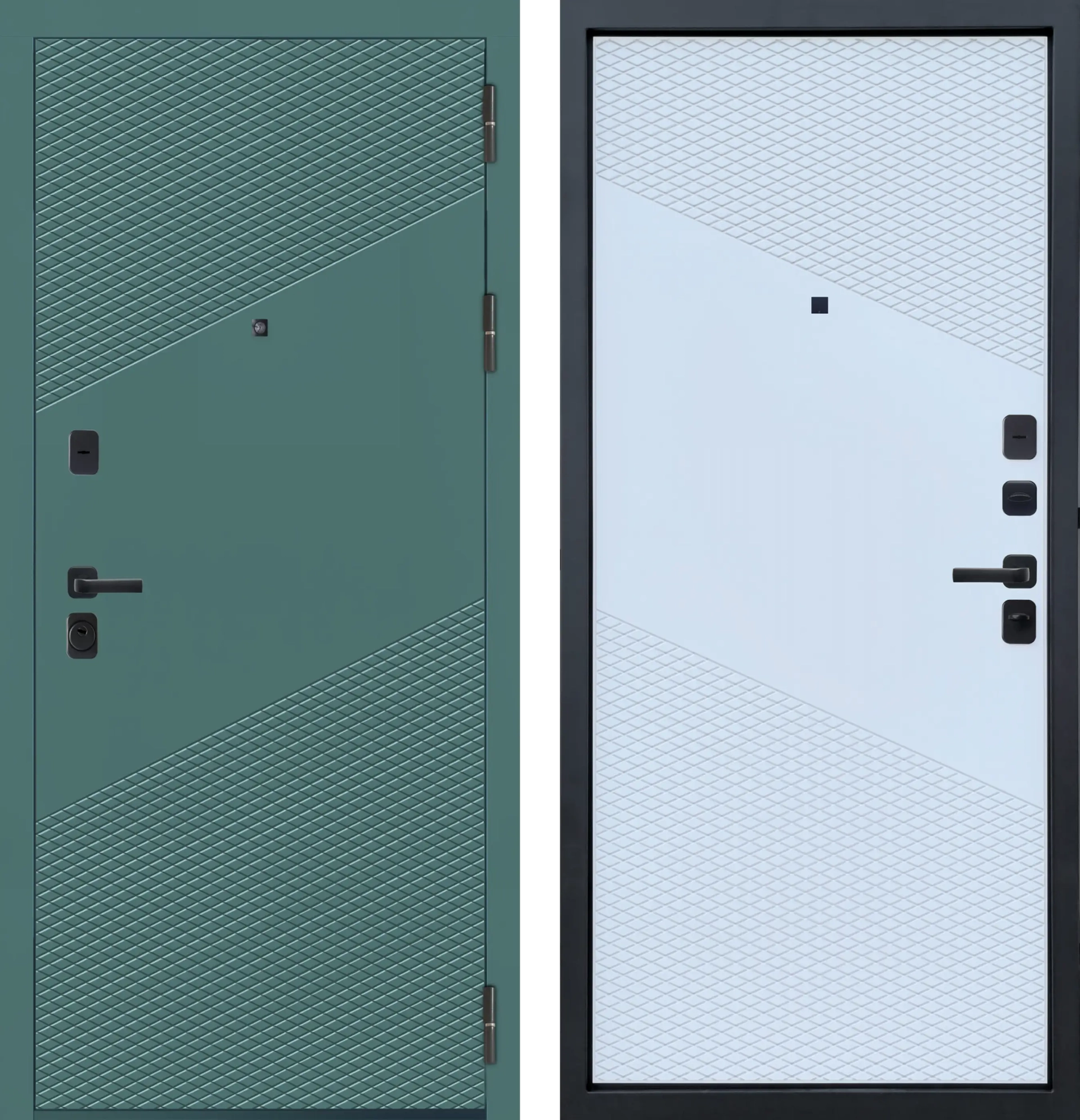 Дверь металлическая МеталЮр M13 (Муар Черный без блестак Velluto Avocado Velluto Bianco 860*2050 Правая)