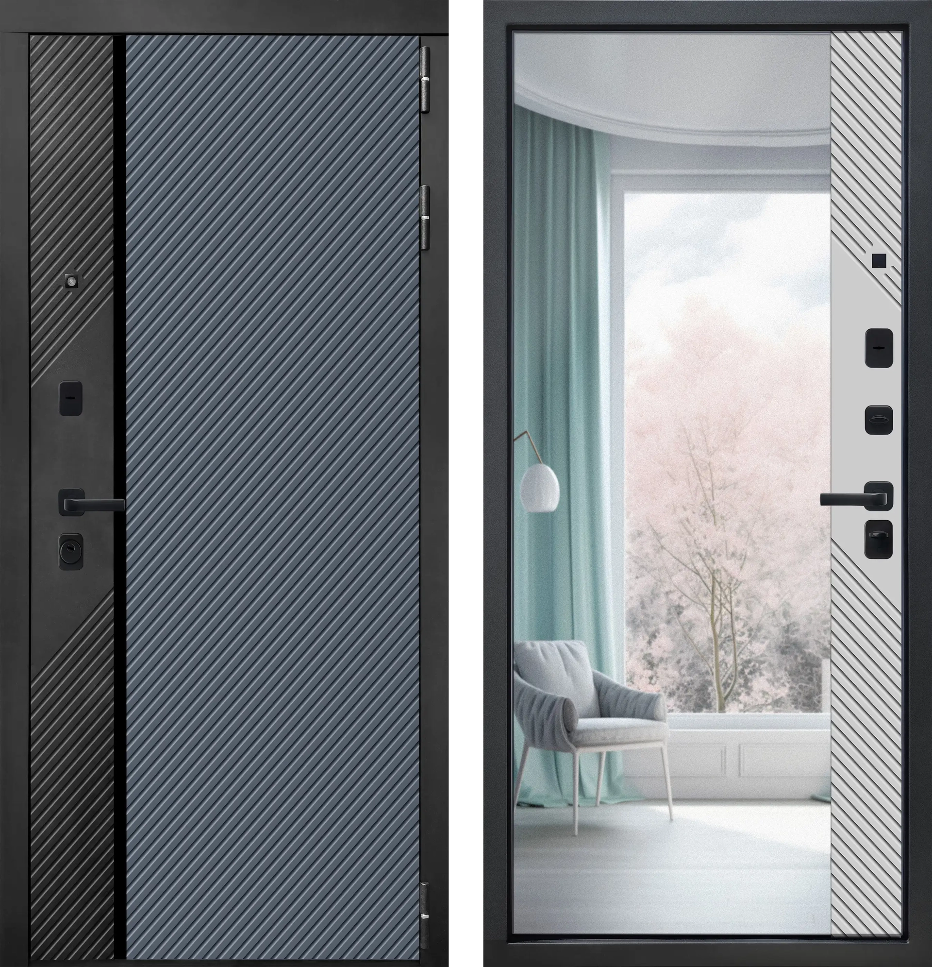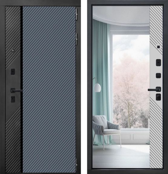 Дверь металлическая МеталЮр M17 (ЗЕРКАЛО Муар Черный без блесток Velluto Oscure/Черная шагрень Velluto Gelato 860*2050 Левая)