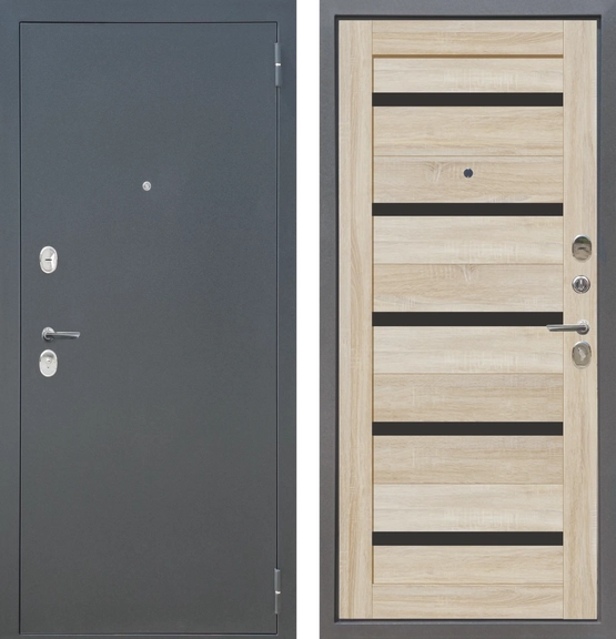 Дверь металлическая МеталЮр M4 (Букле Графит Дуб Сонома светлый/Черное стекло 960*2050 Правая)