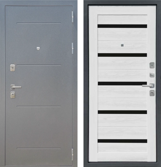 Дверь металлическая МеталЮр М 6 Букле Графит Ясень ривьера Айс/Черное стекло 960*2050 Правая